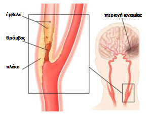 Όταν η πλάκα προκαλεί μεγάλη στένωση αυξάνει η πιθανότητα να σχηματισθεί θρόμβος αίματος ή να ραγεί η αθηρωματική πλάκα με αποτέλεσμα να αποσπασθούν τμήματα του θρόμβου ή της πλάκας που λέγονται έμβολα και στη συνέχεια να αποφράξουν αρτηρίες του εγκεφάλου και να προκαλέσουν ισχαιμικό εγκεφαλικό επεισόδιο.
