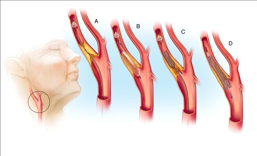 Πρόκειται για επέμβαση που γίνεται συνήθως με τοπική αναισθησία, με παρακέντηση της μηριαίας ή με πολύ μικρή τομή στη βάση του τραχήλου. Η αθηρωματική πλάκα ανακατανέμεται στο αγγειακό τοίχωμα συνήθως με την χρησιμοποίηση ενός stent και μιας συσκευής εγκεφαλικής προστασίας.