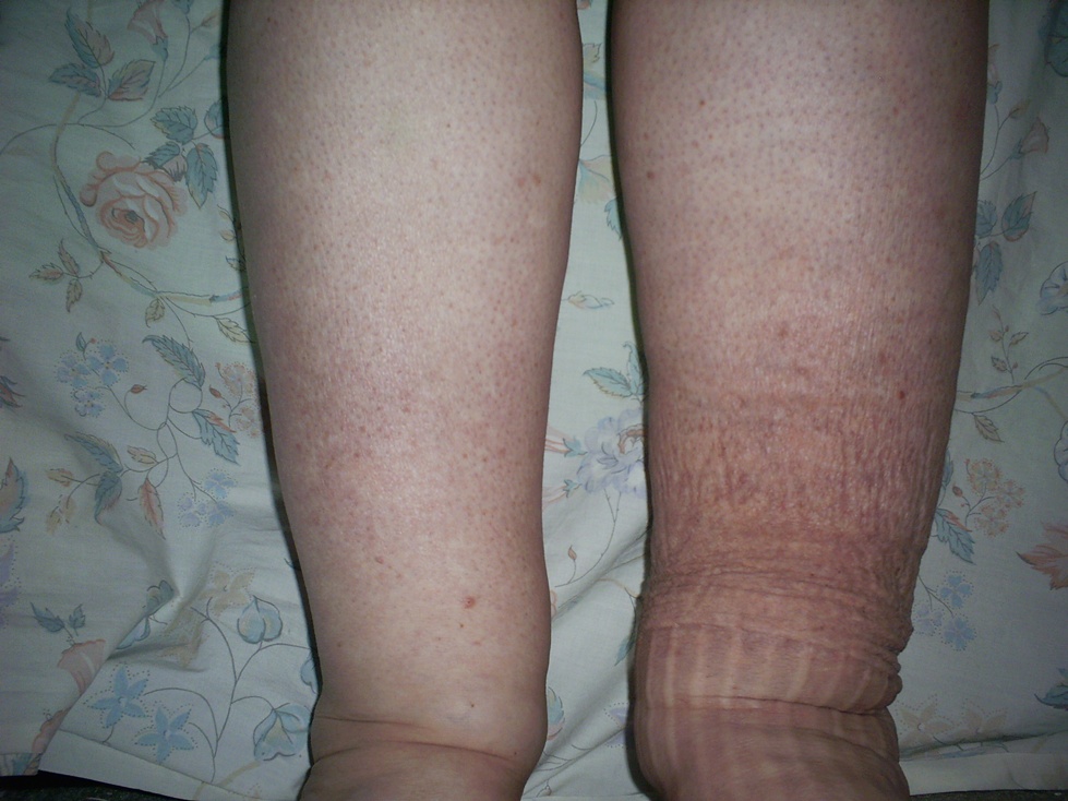 - Αρχικά ο το άκρο διογκώνεται λόγω της συσσώρευσης υγρού πλούσιου σε πρωτεΐνες στον διάμεσο χώρο. Το οίδημα είναι μαλακό και εξαφανίζεται με την συμπίεση ή αφήνει αποτύπωμα κατά την συμπίεση με το δάκτυλο ή μπορεί να υποχωρεί με την ανύψωση του άκρου. Στα κάτω άκρα το οίδημα επεκτείνεται στα δάκτυλα τα οποία παίρνουν μια τετράγωνη μορφή σε αυτή την περίπτωση. Η ραχιαία επιφάνεια του ποδιού επίσης διογκώνεται.